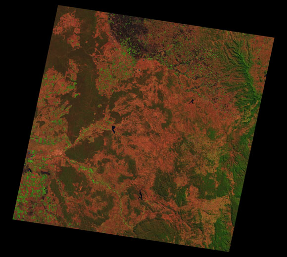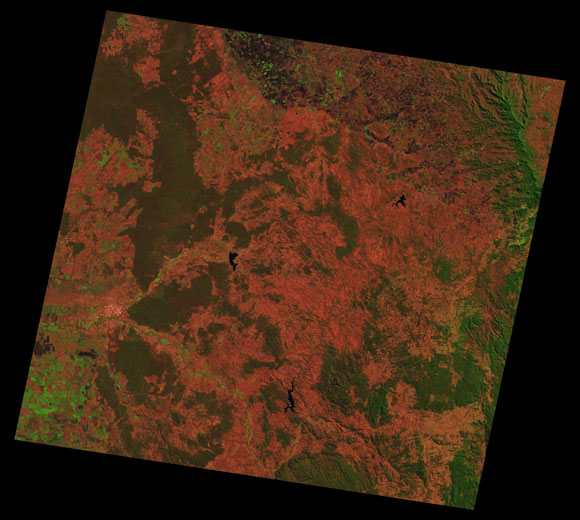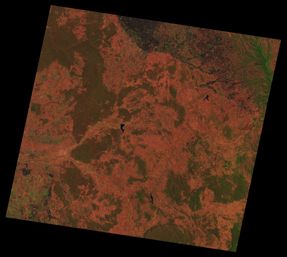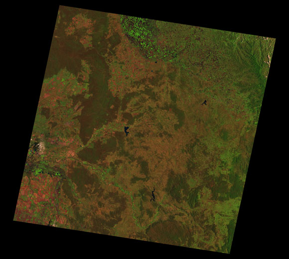 Warwick Landsat SceneWRS path/row: 90/79-80 Images are colour-mapped to enhance the contrast of water bodies (Shortwave→Red, Near-infrared→Green, Green→Blue) Copyright Commonwealth of Australia - Geoscience Australia. Imagery post-processed by DETSI. This page should be cited as: Department of Environment, Science and Innovation, Queensland (2013) Warwick Landsat Scene, WetlandInfo website, accessed 8 May 2025. Available at: https://wetlandinfo.des.qld.gov.au/wetlands/resources/tools/hydro-climate/scene/warw/ |
