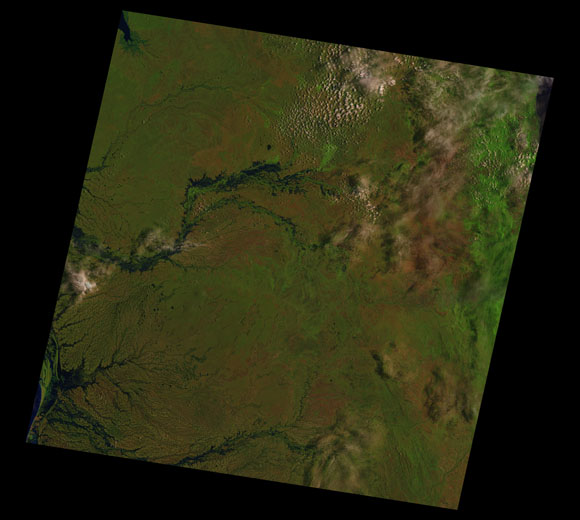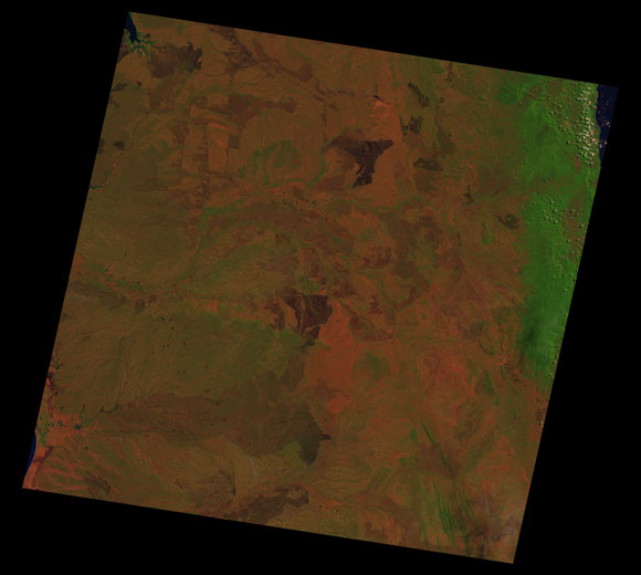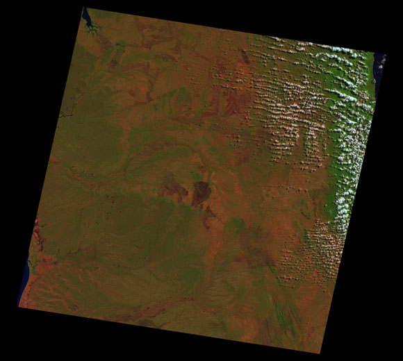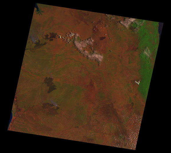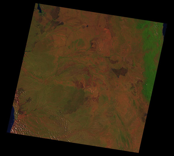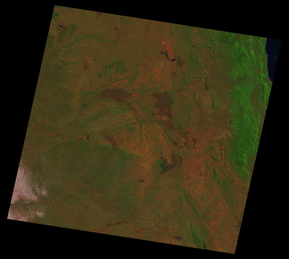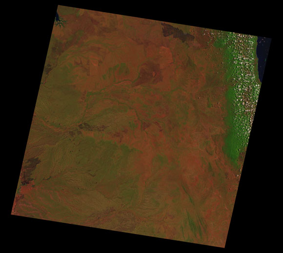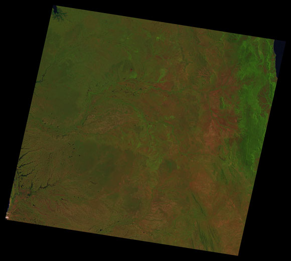 Wolverton Landsat SceneWRS path/row: 98/69-70 Images are colour-mapped to enhance the contrast of water bodies (Shortwave→Red, Near-infrared→Green, Green→Blue) Copyright Commonwealth of Australia - Geoscience Australia. Imagery post-processed by DETSI. This page should be cited as: Department of Environment, Science and Innovation, Queensland (2013) Wolverton Landsat Scene, WetlandInfo website, accessed 8 May 2025. Available at: https://wetlandinfo.des.qld.gov.au/wetlands/resources/tools/hydro-climate/scene/wolv/ |