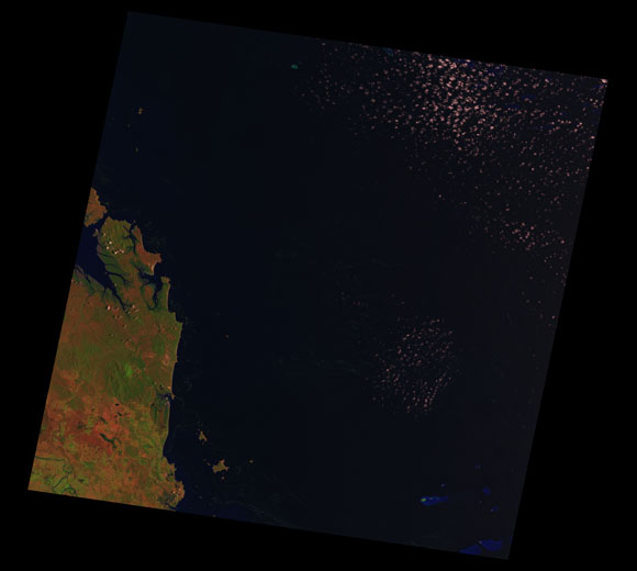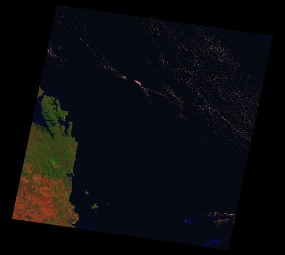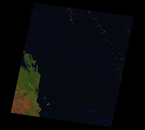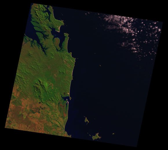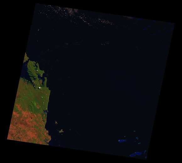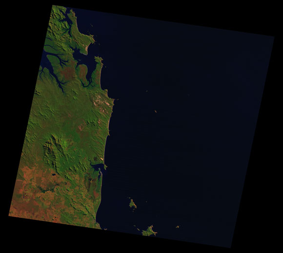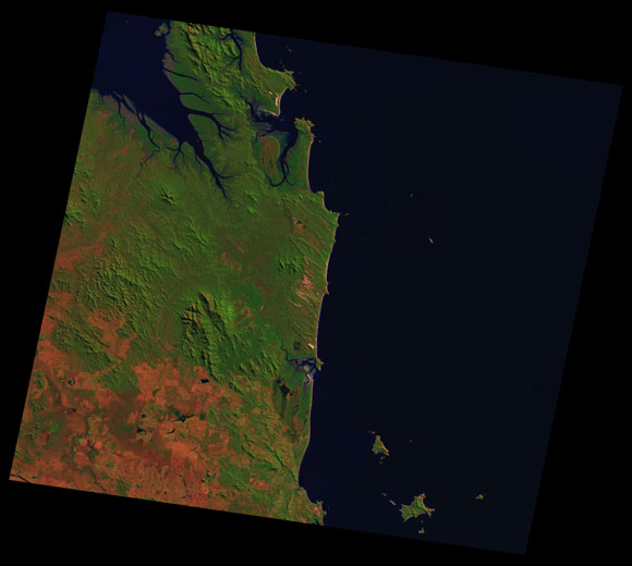 Yeppoon Landsat SceneImages are colour-mapped to enhance the contrast of water bodies (Shortwave→Red, Near-infrared→Green, Green→Blue) Copyright Commonwealth of Australia - Geoscience Australia. Imagery post-processed by DETSI. This page should be cited as: Department of Environment, Science and Innovation, Queensland (2013) Yeppoon Landsat Scene, WetlandInfo website, accessed 8 May 2025. Available at: https://wetlandinfo.des.qld.gov.au/wetlands/resources/tools/hydro-climate/scene/yepp/ |
