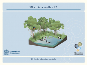 Wetland on-line education modules![]() A series of on-line education modules, including What is a wetland?, has been prepared as a resource for people who want to learn more about wetlands. Users can download and use the contents of this education module to meet their learning and training needs. This information should be used in conjunction with information found on this website. This resource outlines the key principles of a wetland definition and should not be used for statutory purpose. Wetland WanderWetland Wander is an art-science collaboration led by wetland ecologist Fernanda Adame, sound artist Leah Barclay, walking/media artist James Cunningham, and multimedia artist Suzon Fuks. It incorporates knowledge from current and traditional landowners within Quandamooka (Moreton Bay), and Nywaigi, Gulgnay and Girramay countries (North Queensland). The rationale for the exhibition was that Wetland Wander aims to inspire engagement in the environmental, cultural and aesthetic values of wetlands and conservation of these critical ecosystems. Brochures and posters